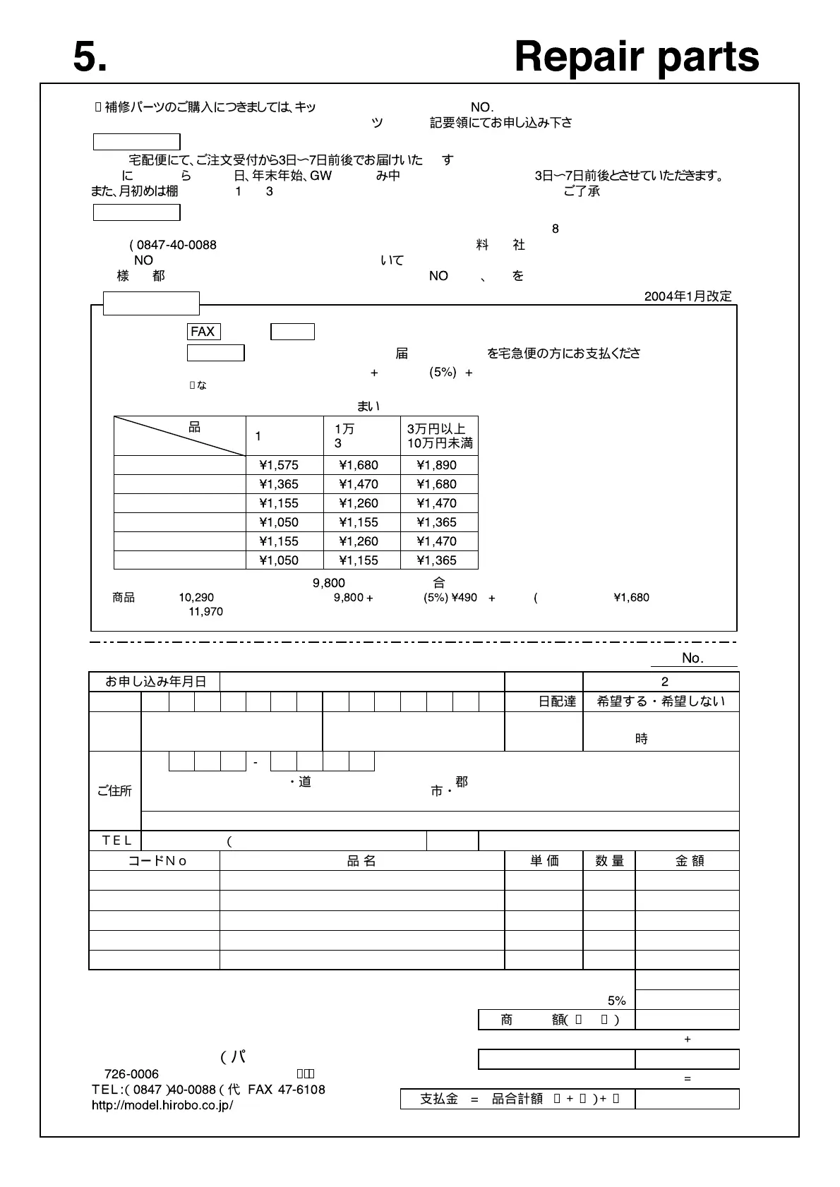 ●上記の方法で購入が困難な場合は、直接当社パーツ係まで下記要領にてお申し込み下さい。