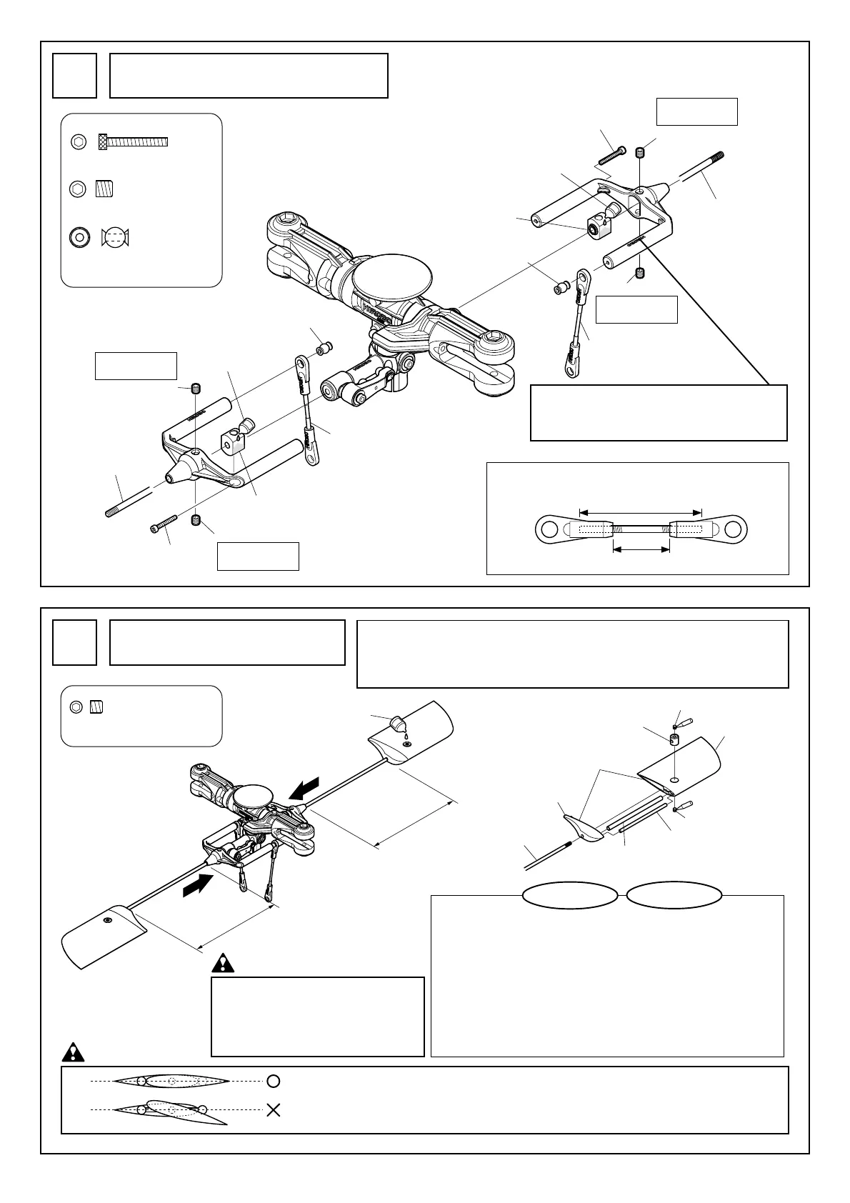 スタビライザーブレードとスタビライザーコントロールアームは平行であること。