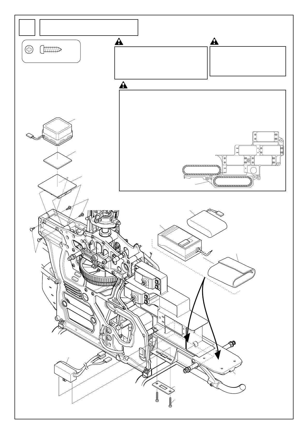 メカマウント内に受信機またはバッテリーを搭載する場合は、動かないようスポンジを全