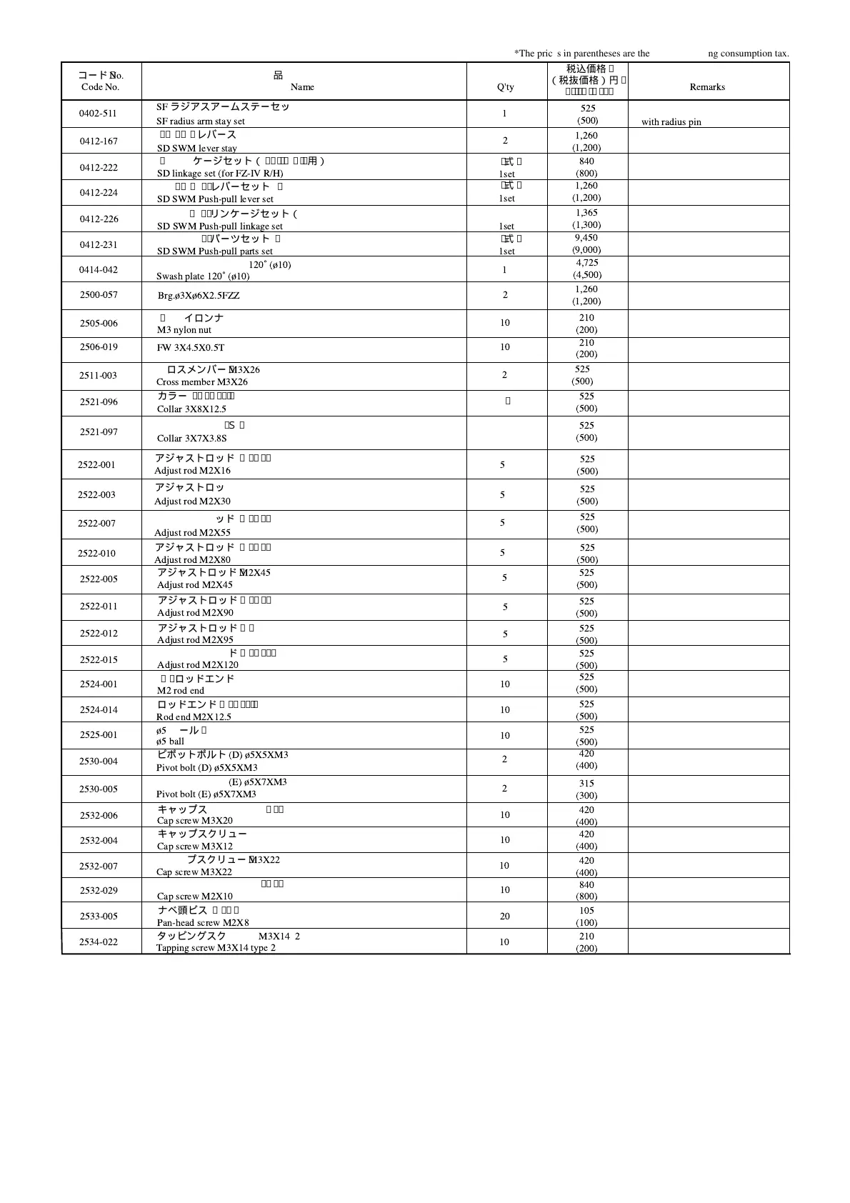 *The prices in parentheses are the prices excluding consumption tax.