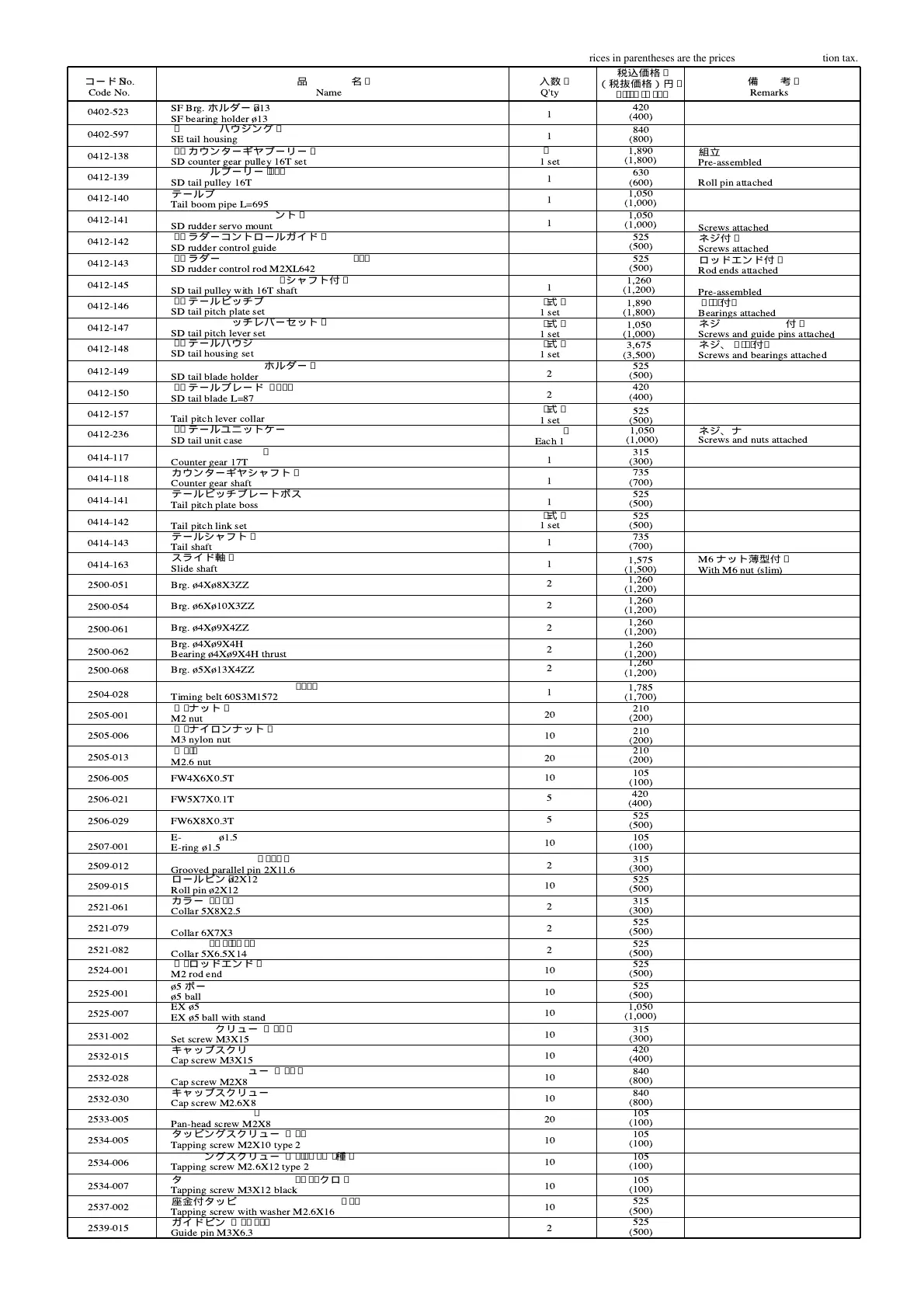 *The prices in parentheses are the prices excluding consumption tax.