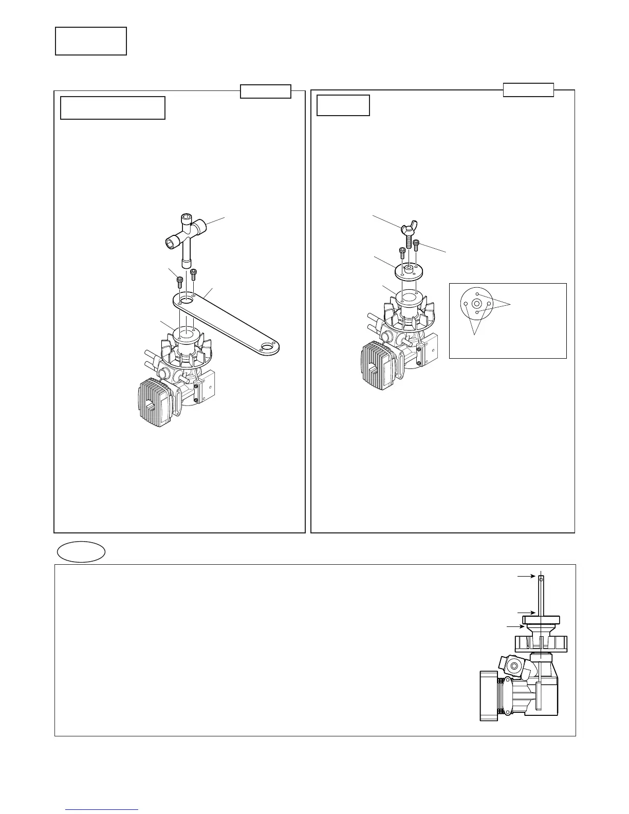 It is important that the flywheel and clutch shoe are precisely assembled centered and straight on the rotation axis of the engine’s