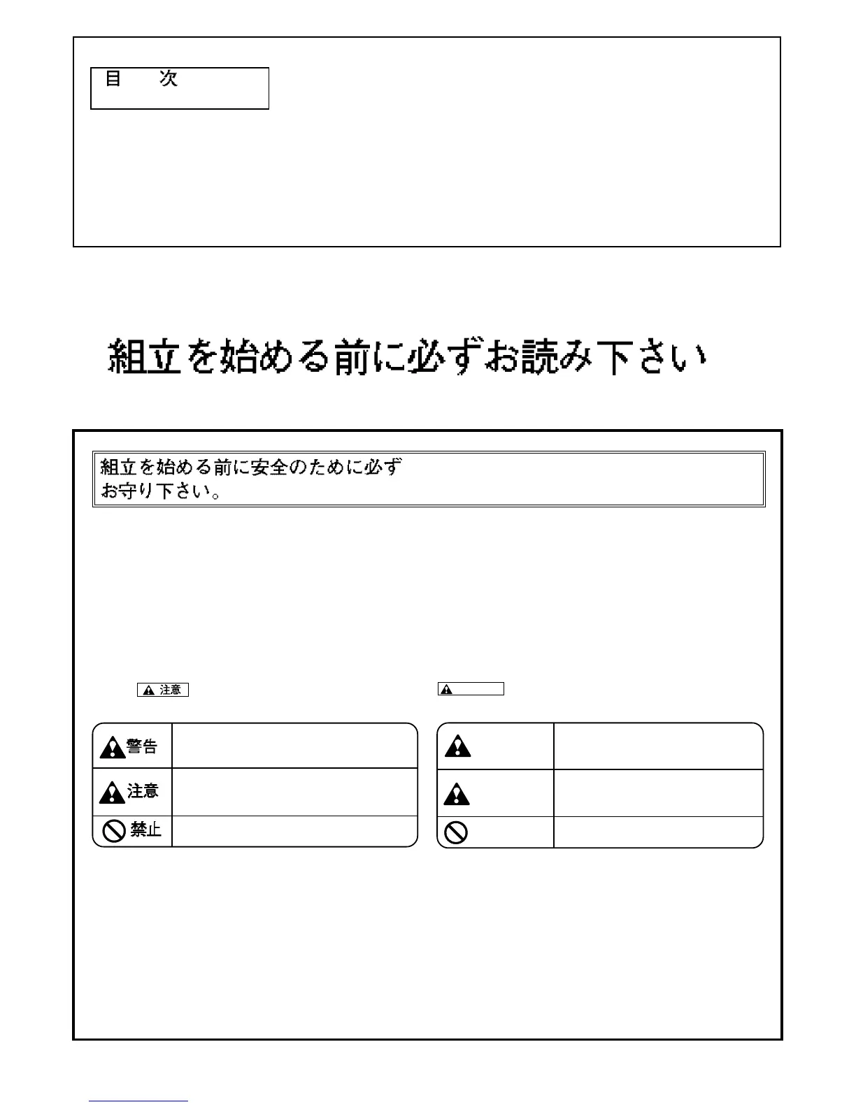 1. 組立を始める前に必ずお読み下さい ................................................ 1