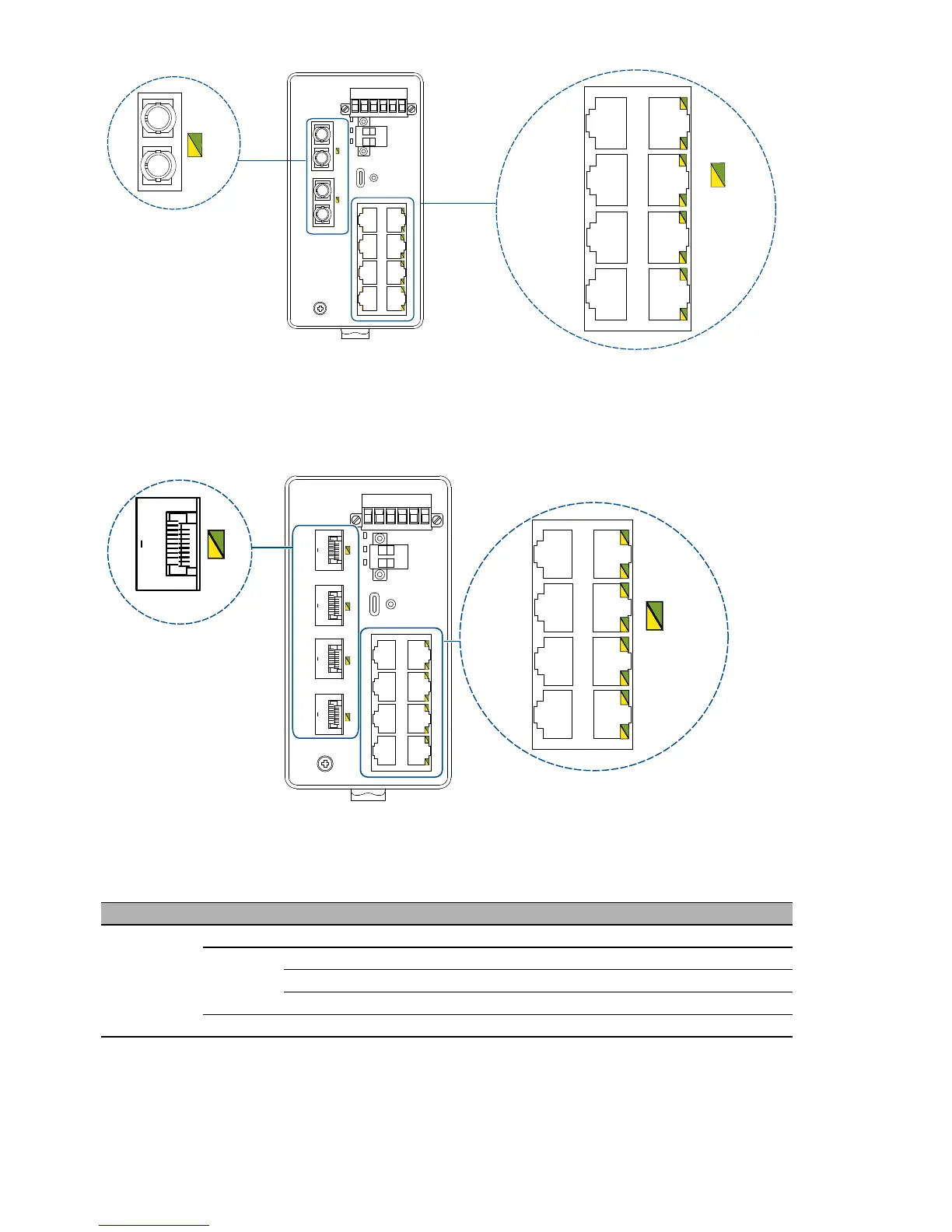 Figure 5: LED display elements for device variants with SFP slots and 8 × RJ45