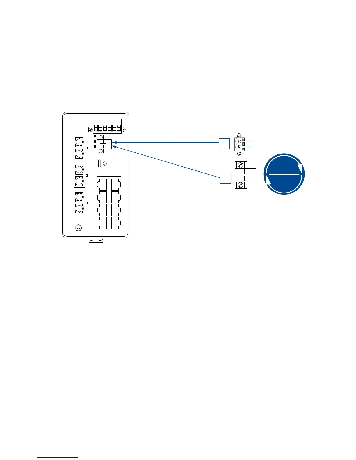 Figure 8: (1) Connection on the device, (2) terminal block mounted on the device
