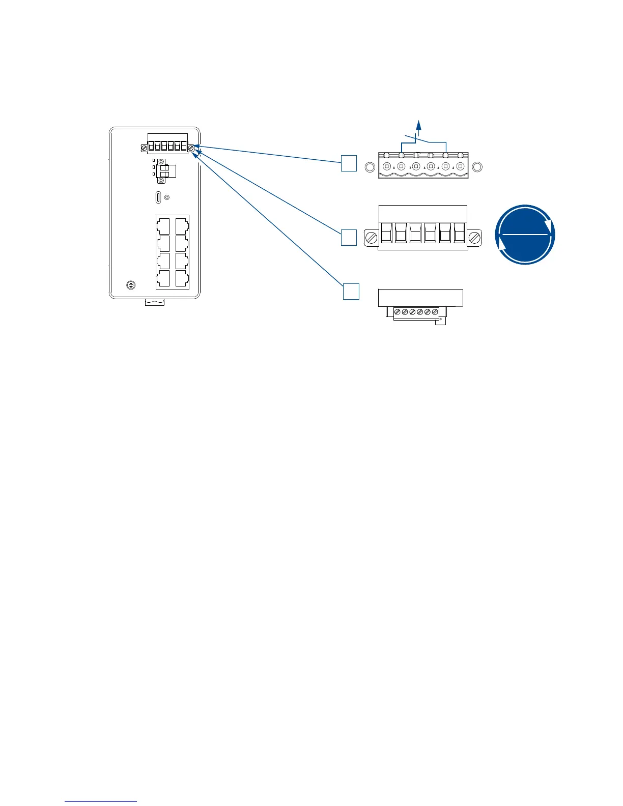 Figure 14: (1) Connection on the device, (2) terminal block mounted on the device