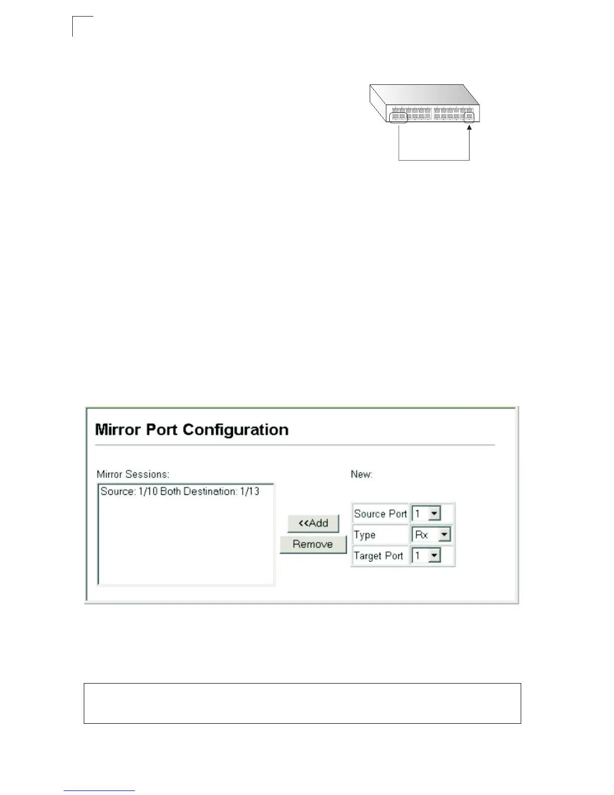 • When mirroring port traffic, the target port must be included in the same VLAN as