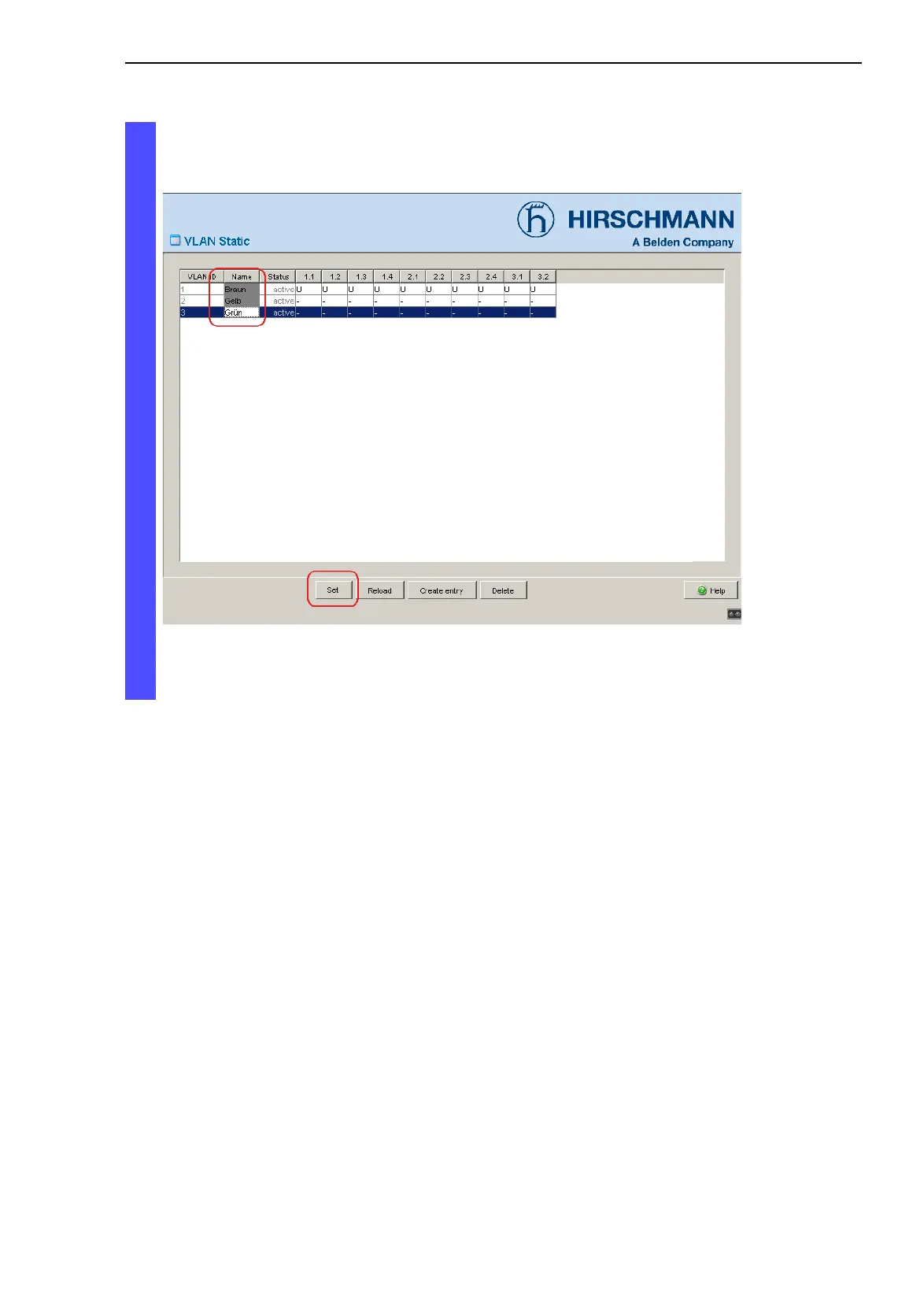 Figure 45: Assigning a VLAN any name and saving it