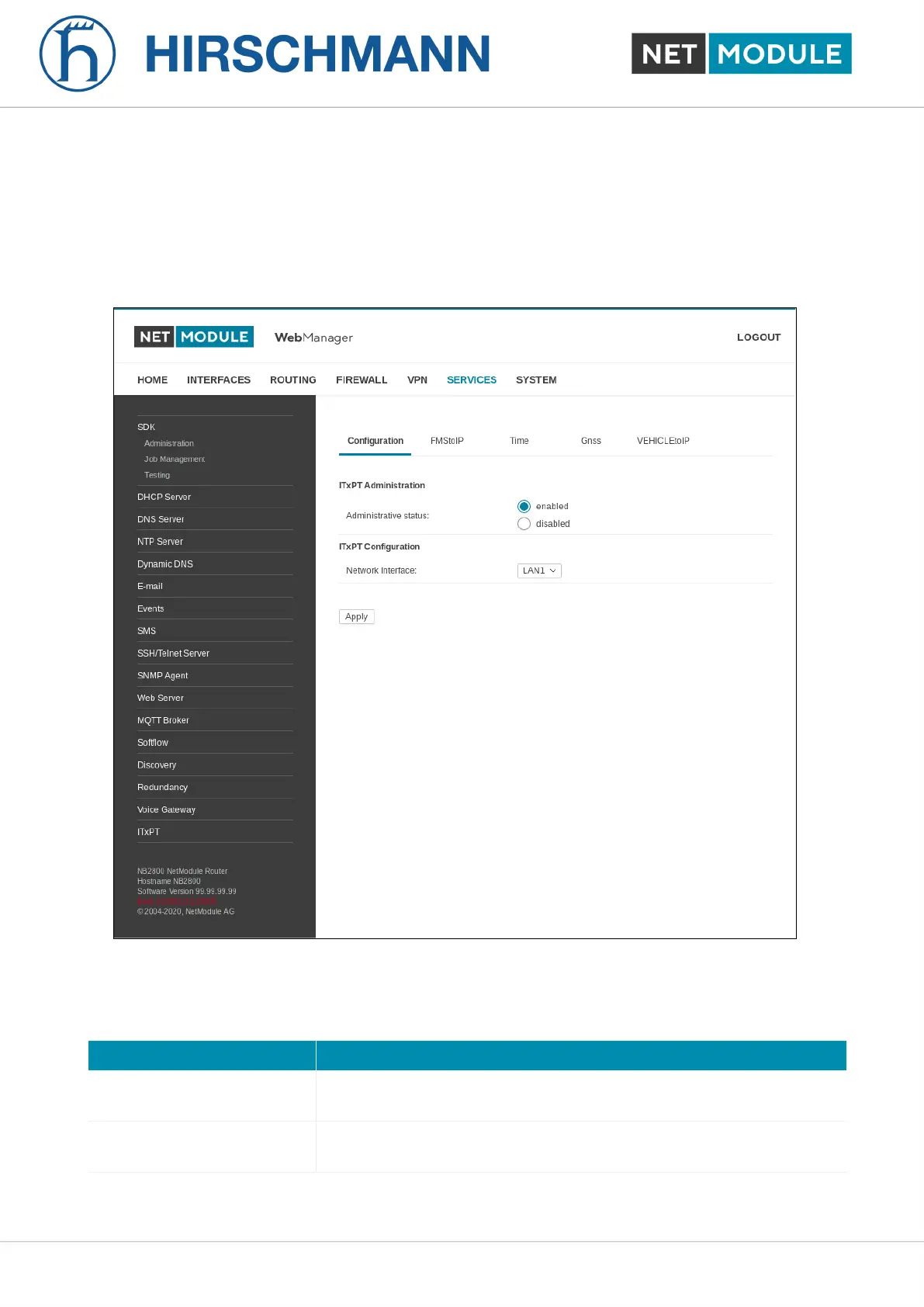 Administrative status Specifies whether the ITxPT functionality should be enabled or dis-