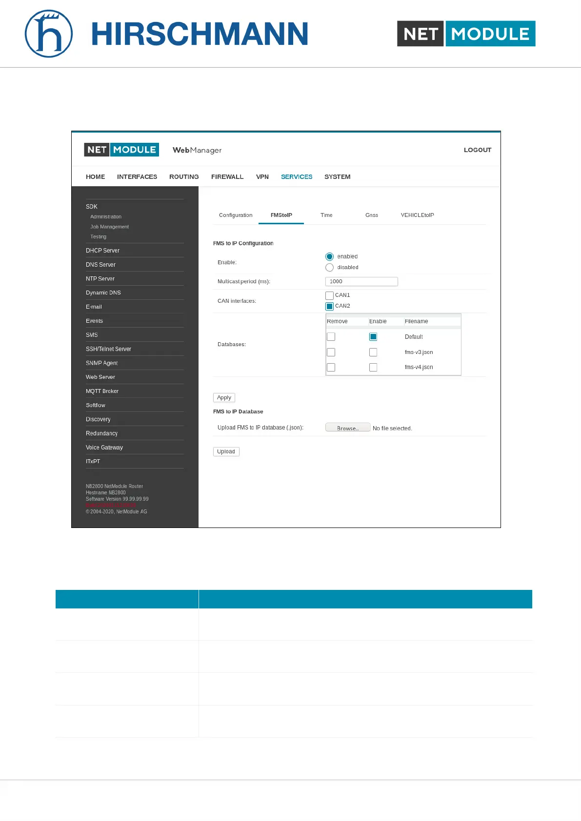 Databases Select the FMS to IP databases used to process the can-data (multi-