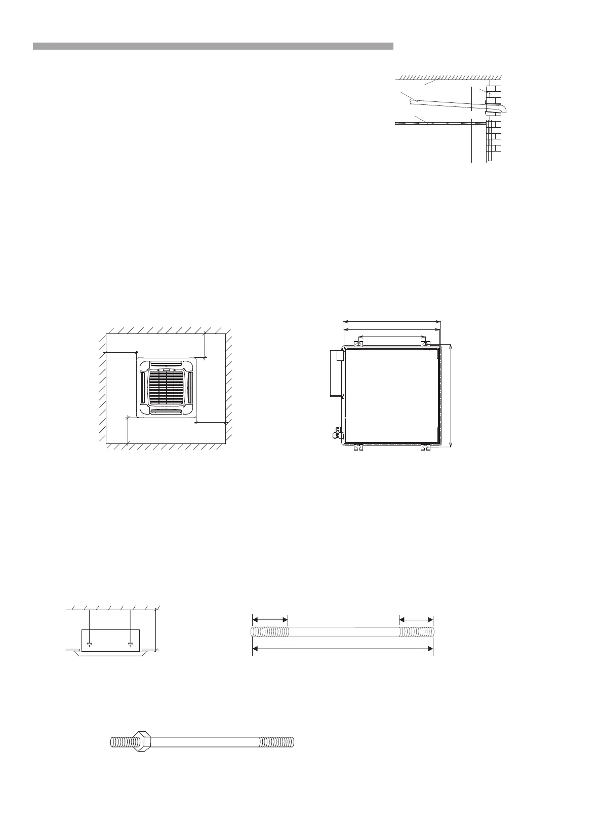 Muster für die Öffnung der Zwischendecke und Montage der Aufhängungsbolzen.