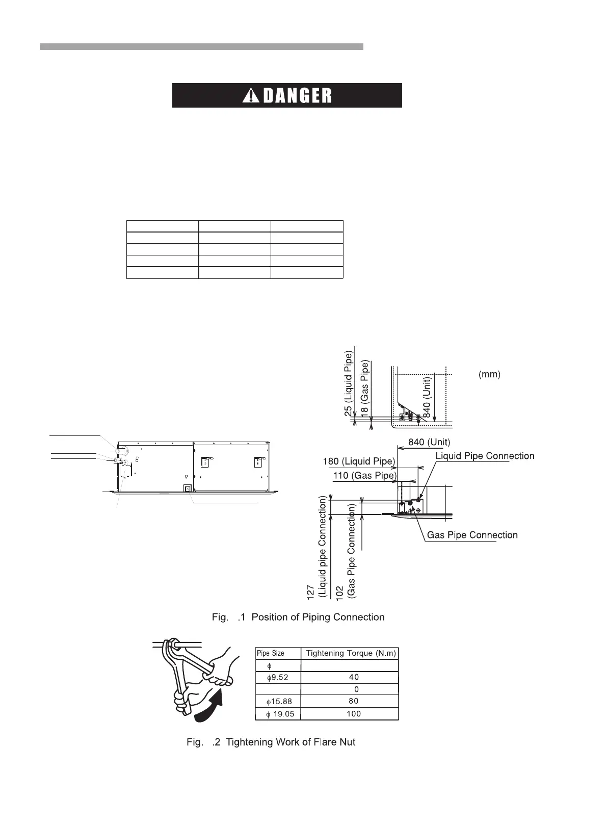 (1) Position of piping connection is shown in Fig.5.1.(Indoor Unit)