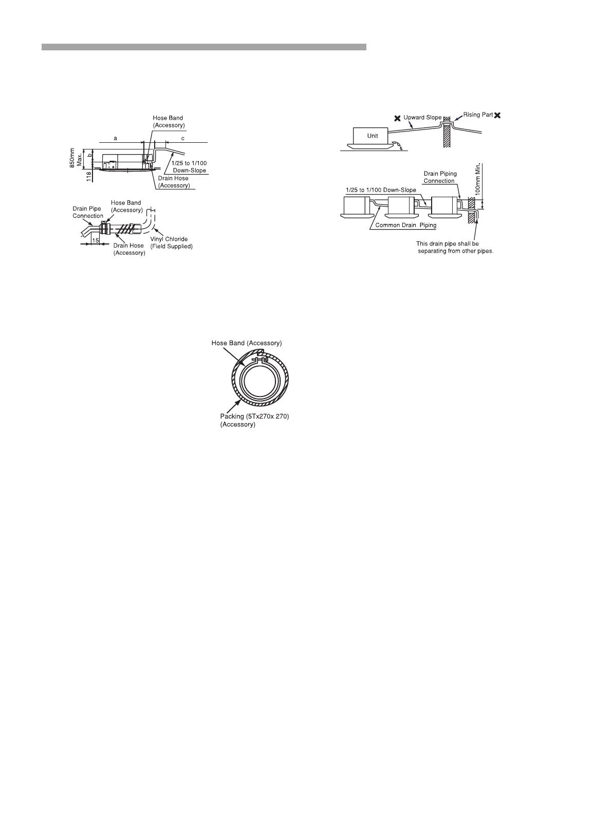 drain piping must be performed with a down-slope pitch of 1/25 to 1/100.