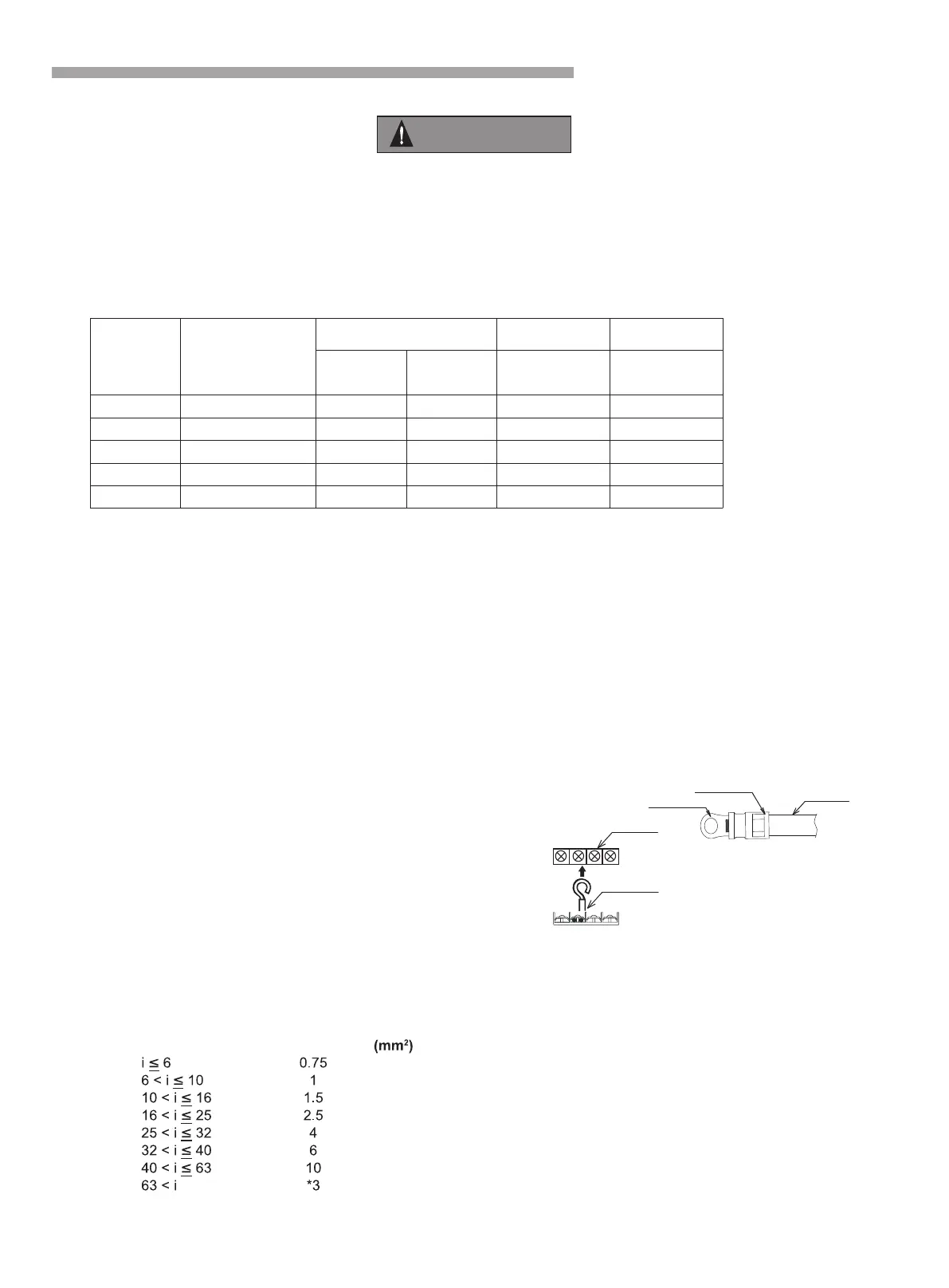 1) Siga los códigos y normas locales cuando selecciona los cables.