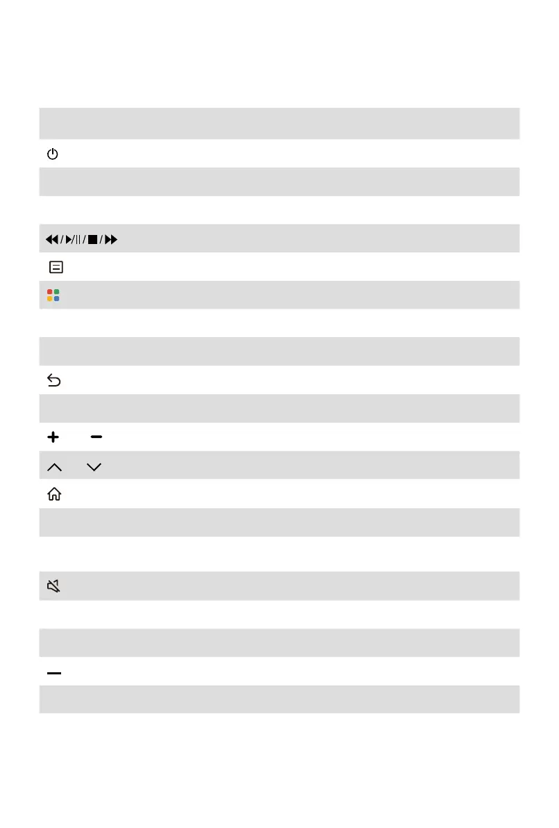 • Buttons listed here are for reference only. Actual remote control may vary depending