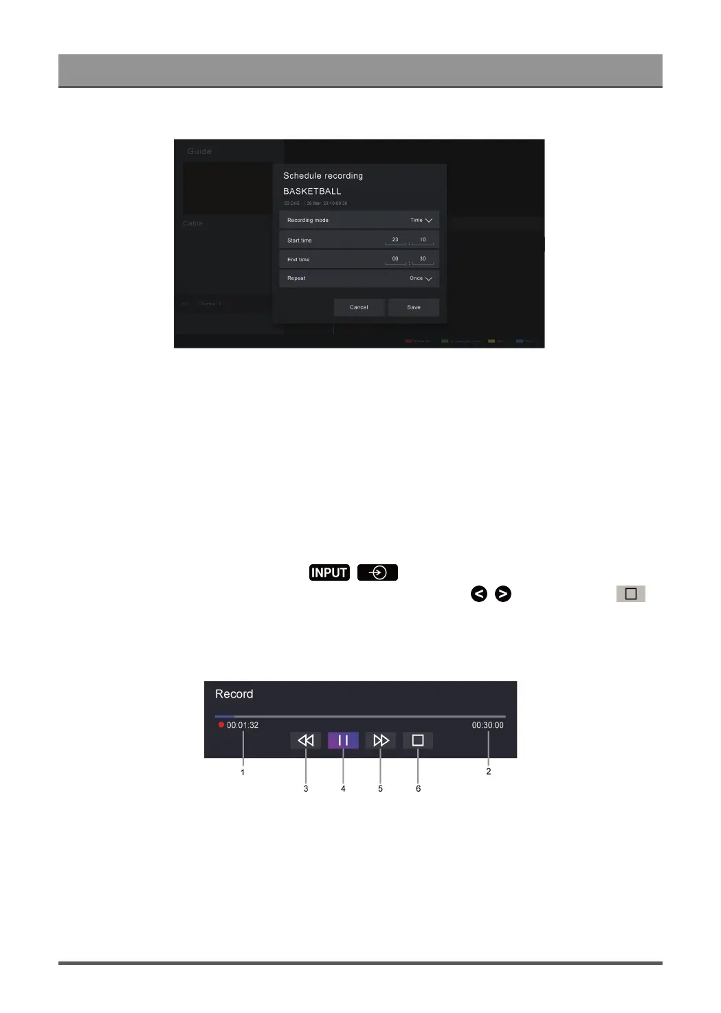 mode, but the recording process will continue. If you press the power button again to wake up the TV, the