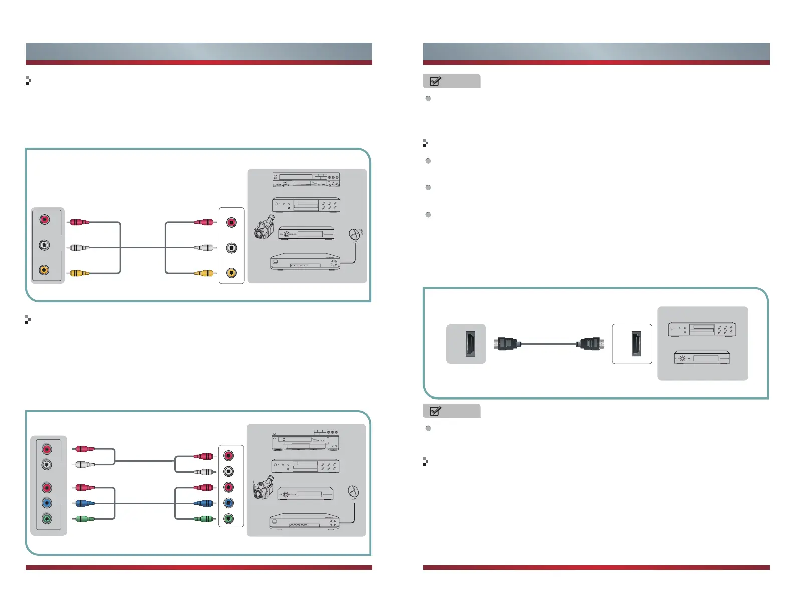 Connect Component inputs (“Pr ”,“Pb ”, “Y”) and audio(R/L) of your set with