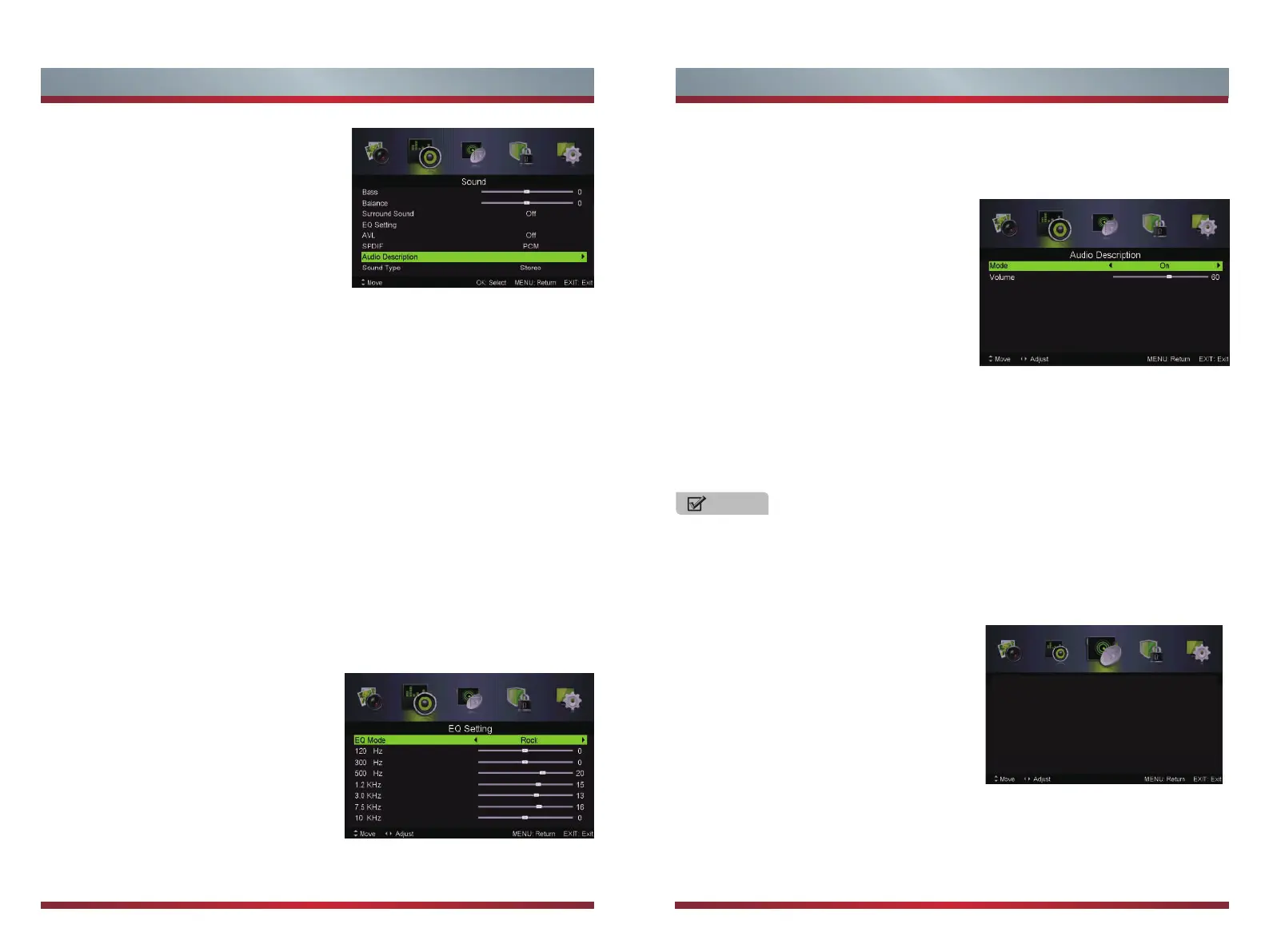 Balance: This item can adjust the speaker’s output, it enables you to listen to best at
