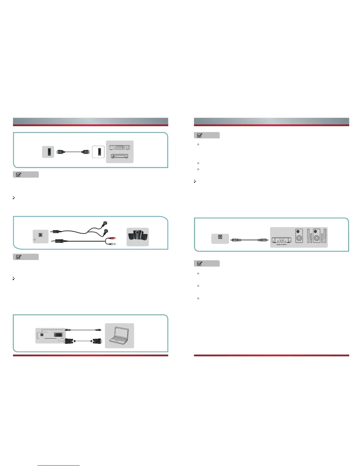 1. Use a Optical fiber cable to connect the A/V device’s digital audio in jack to the