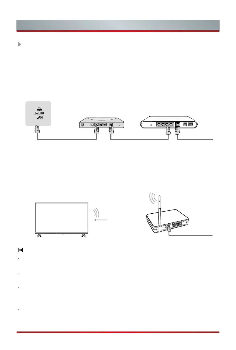 TV to an external modem or router using a LAN (Ethernet/Cat 5) cable. See the