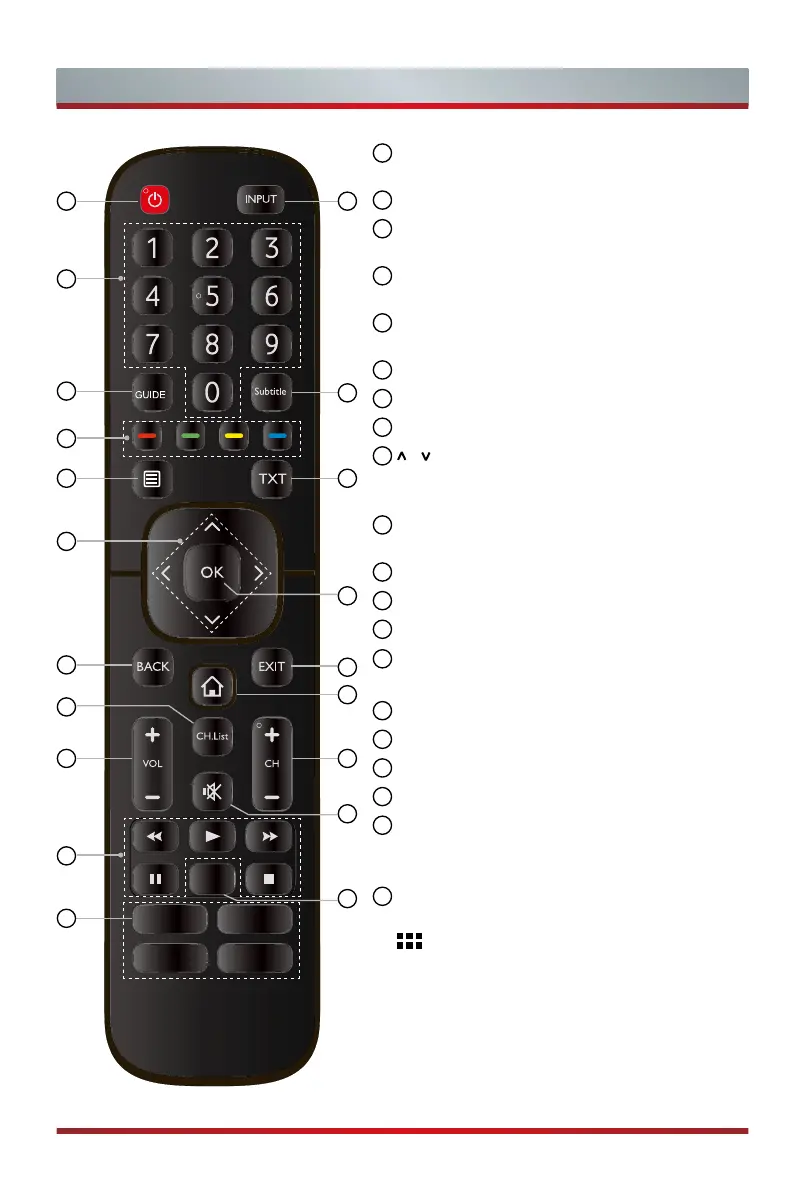 POWER: Switch the TV on or into standby