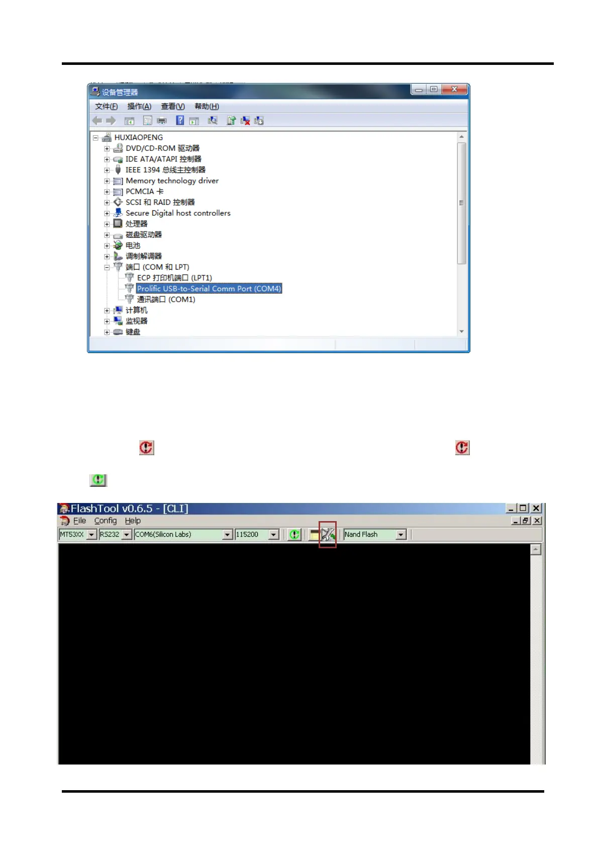 Select the right baud rate according to chip model. For this unit( chip model is MT5651), select 115200.