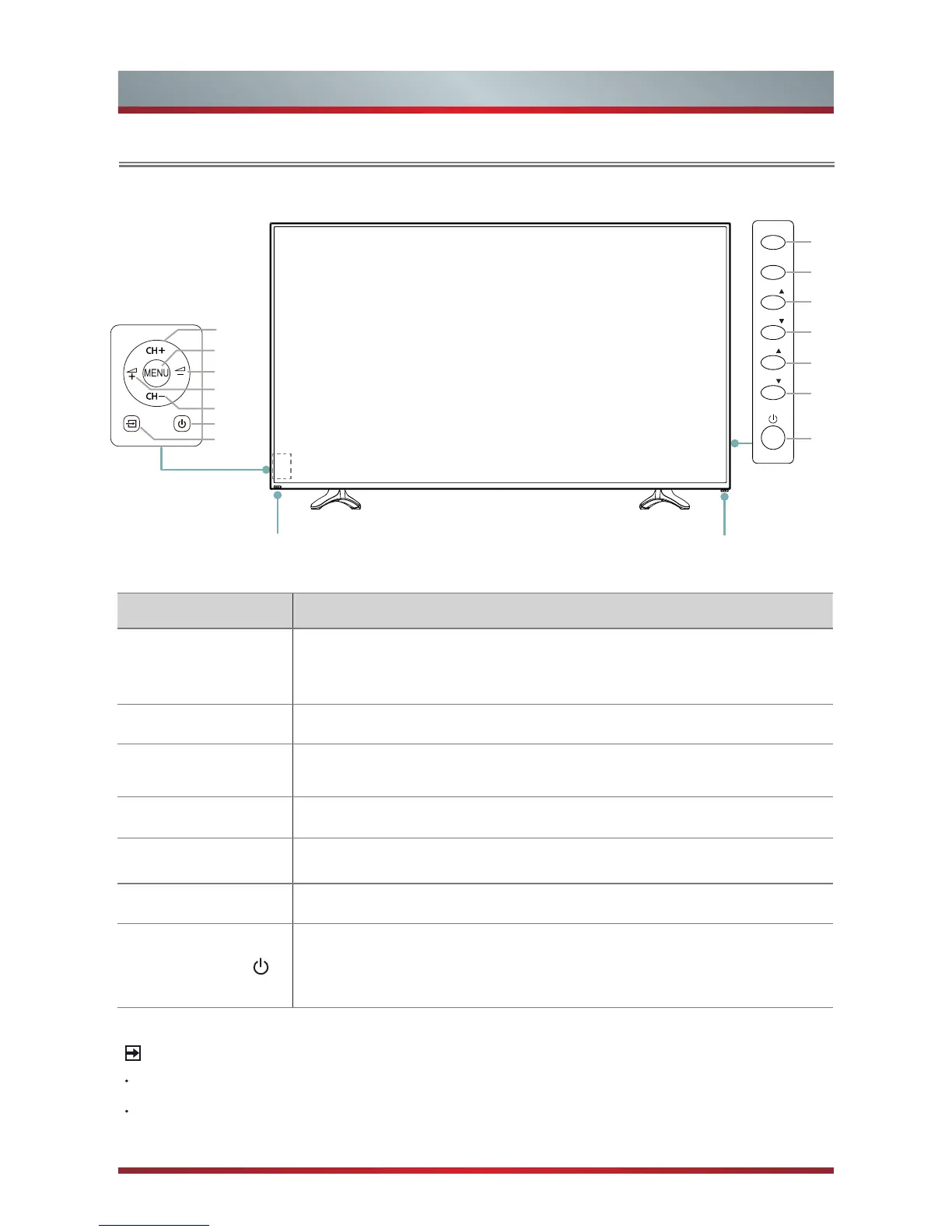 Select among the different input signal sources or put the TV in
