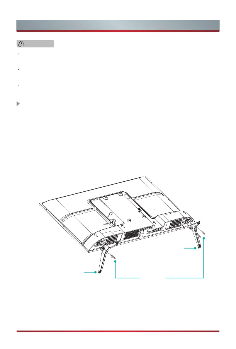 3. Secure the Base Stand to the TV with the screws in accessory tightly.