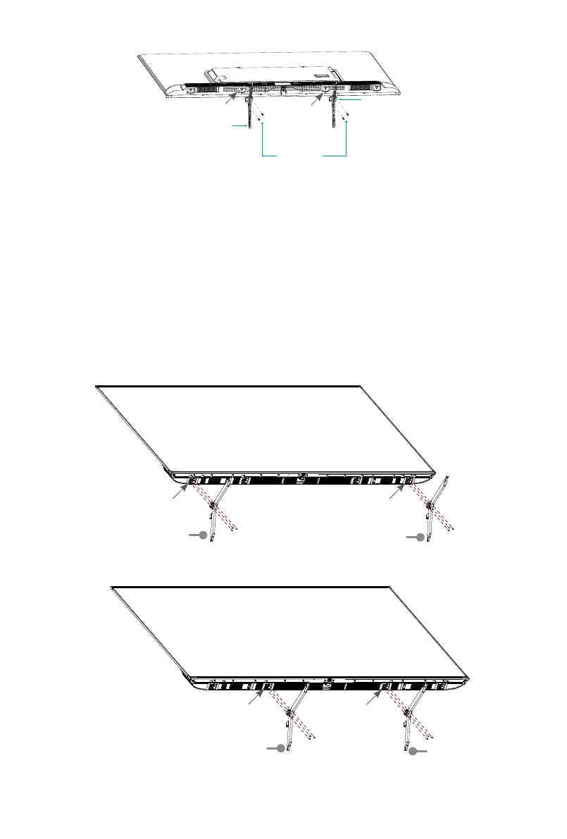 3. Secure the stands to the TV with the 6 screws in accessory tightly.