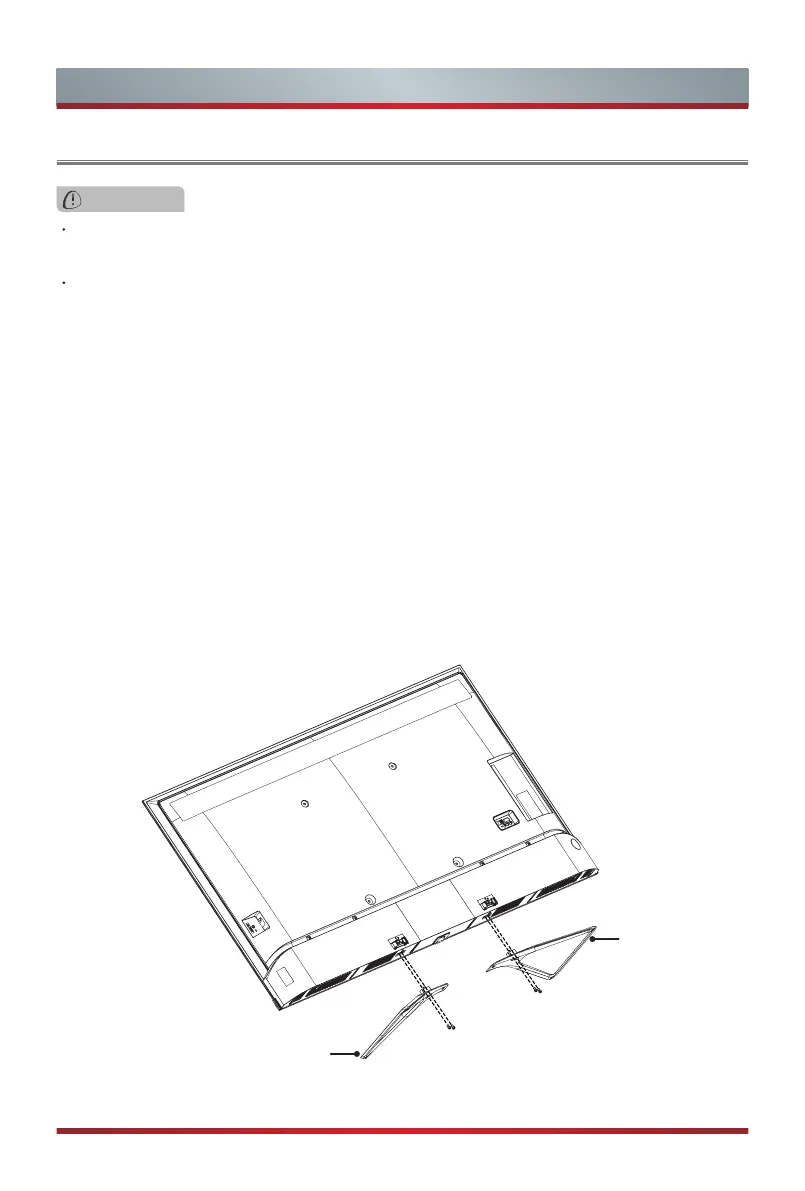 3. Secure the Base Stand to the TV with the 4 screws in the accessory bag tightly.