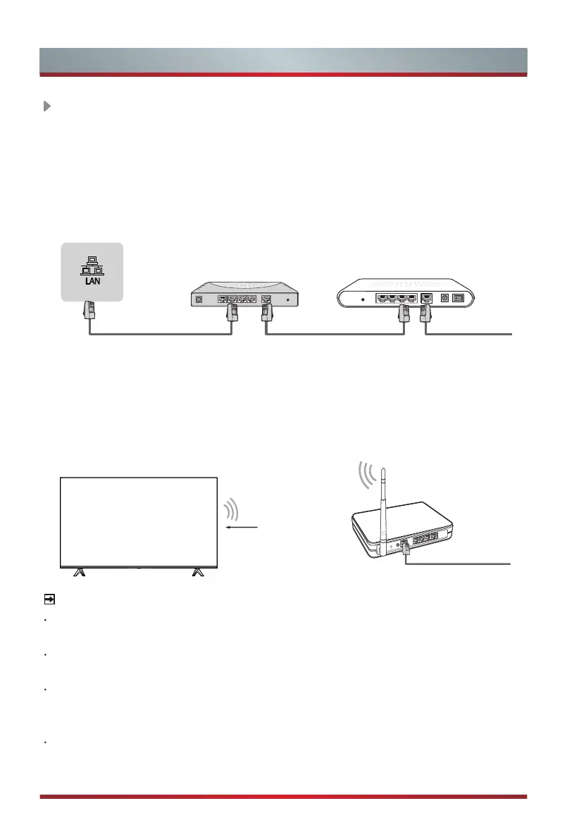 TV to an external modem or router using a LAN (Ethernet/Cat 5) cable. See the