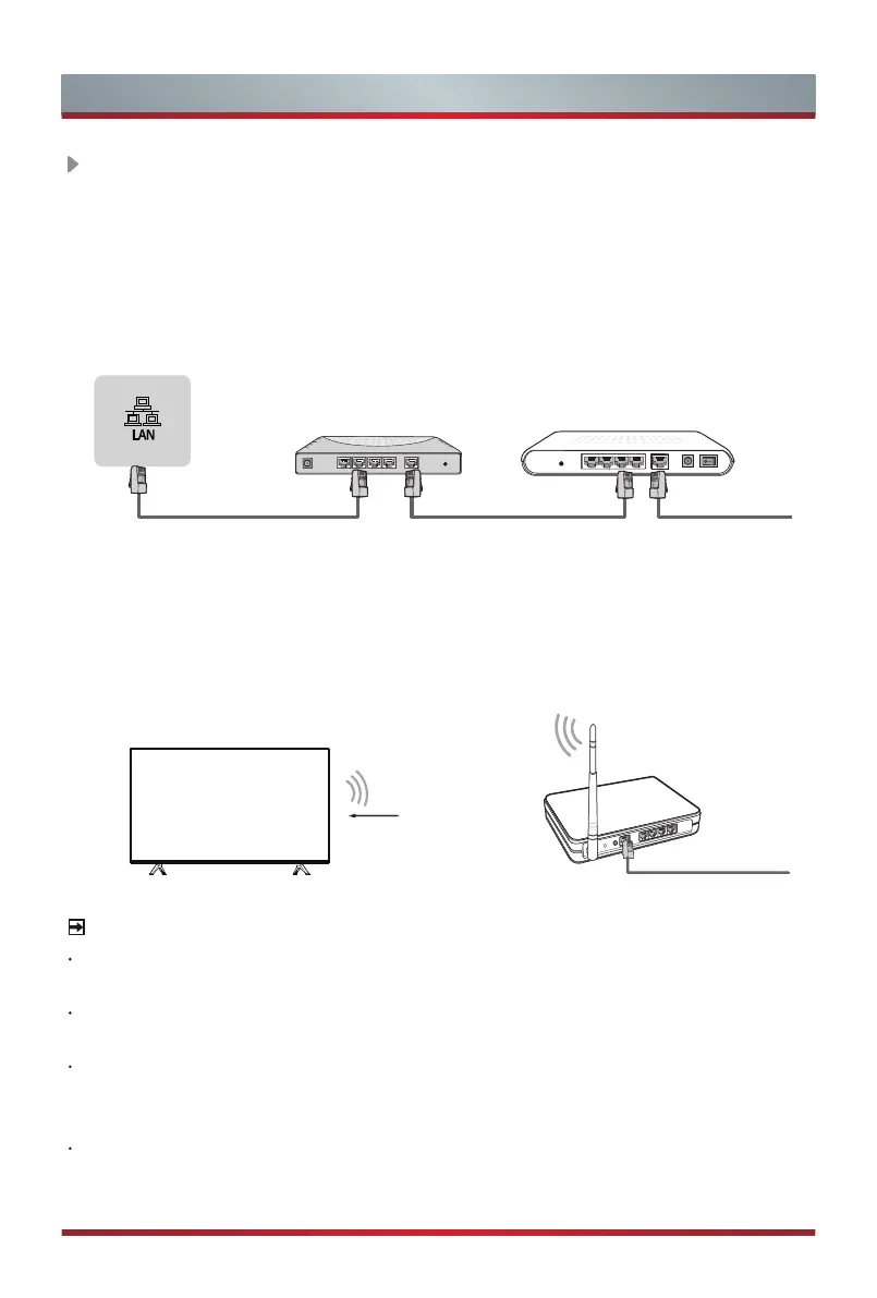 TV to an external modem or router using a LAN (Ethernet/Cat 5) cable. See the