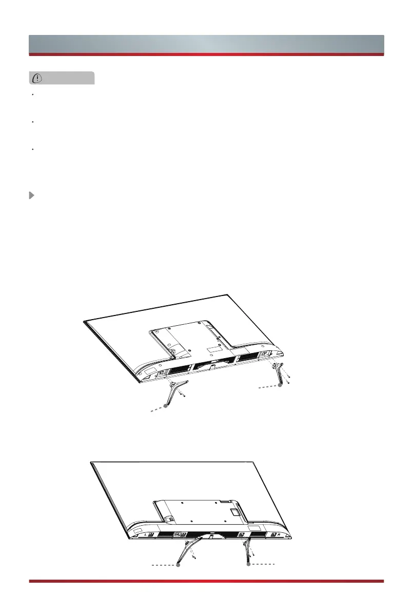 3. Secure the Base Stand to the TV with the screws in accessory tightly.
