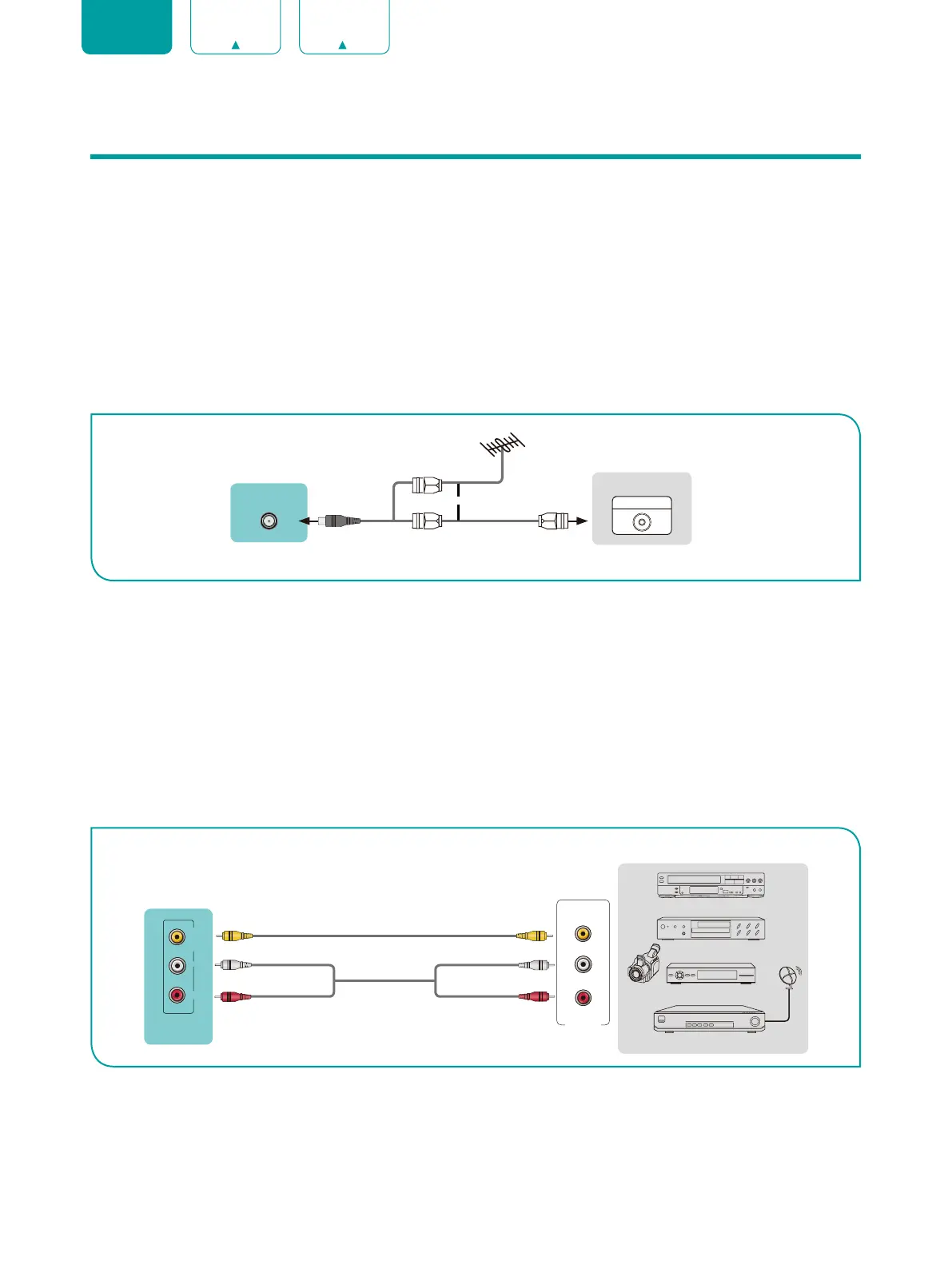 To connect an antenna,cable set-top box or satellite receiver: