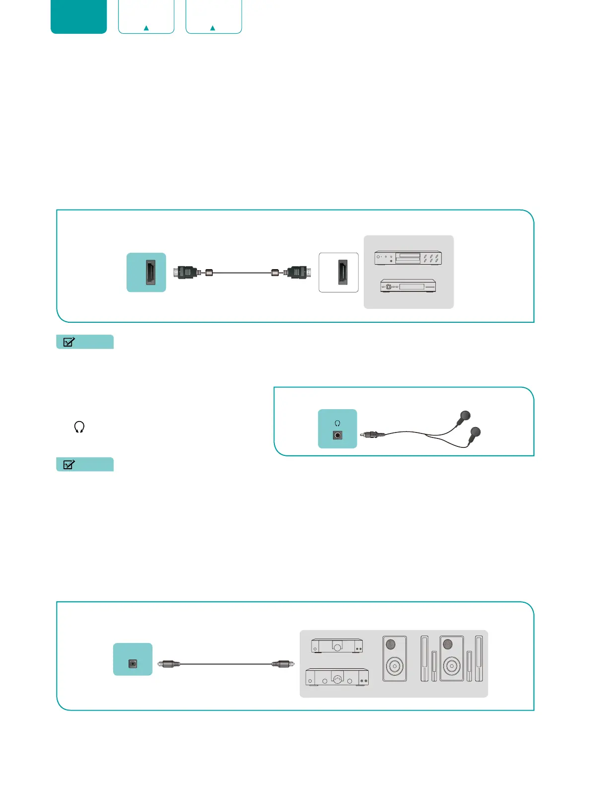 • Because the HDMI connector provides video and audio signals, it is not necessary to connect an audio cable.