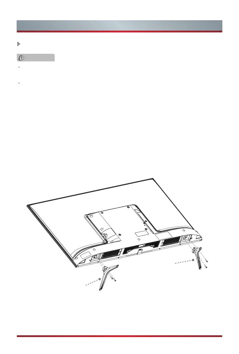 3. Secure the Base Stand to the TV with the screws in accessory tightly.