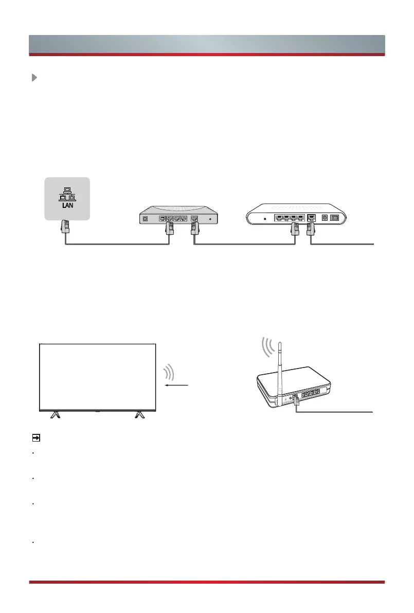 TV to an external modem or router using a LAN (Ethernet/Cat 5) cable. See the