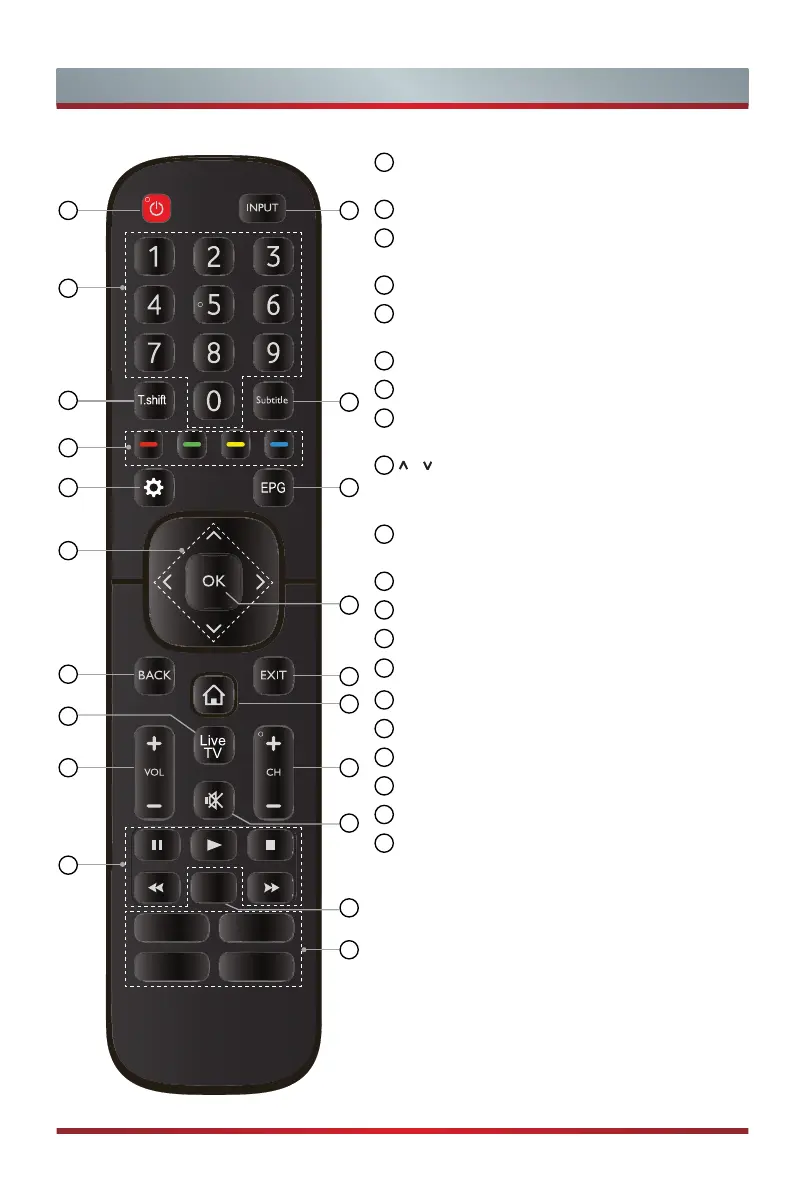 POWER: Switch the TV on or into standby