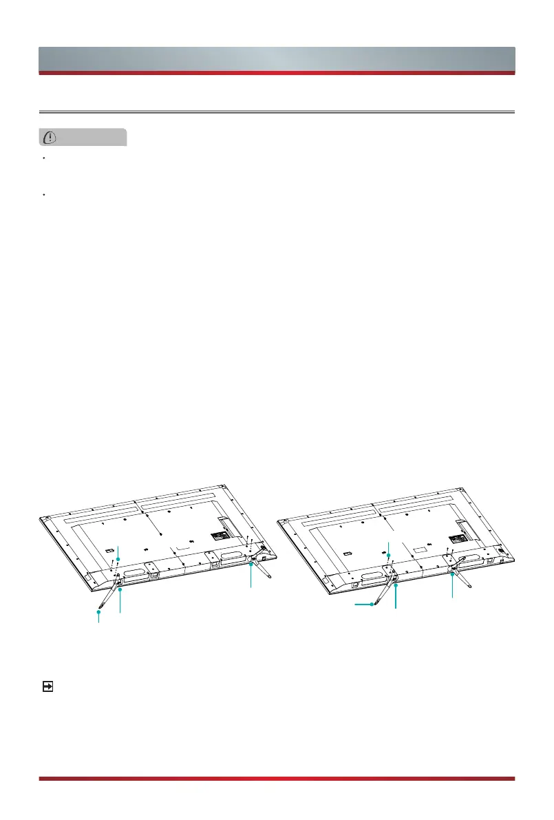 3. Secure the Base Stand to the TV with the 4 screws in accessory tightly.