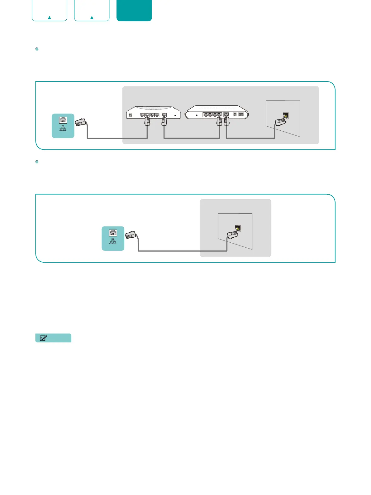en la parte trasera de su TV directamente a una toma de red con un cable de Ethernet. Consulte el diagrama a