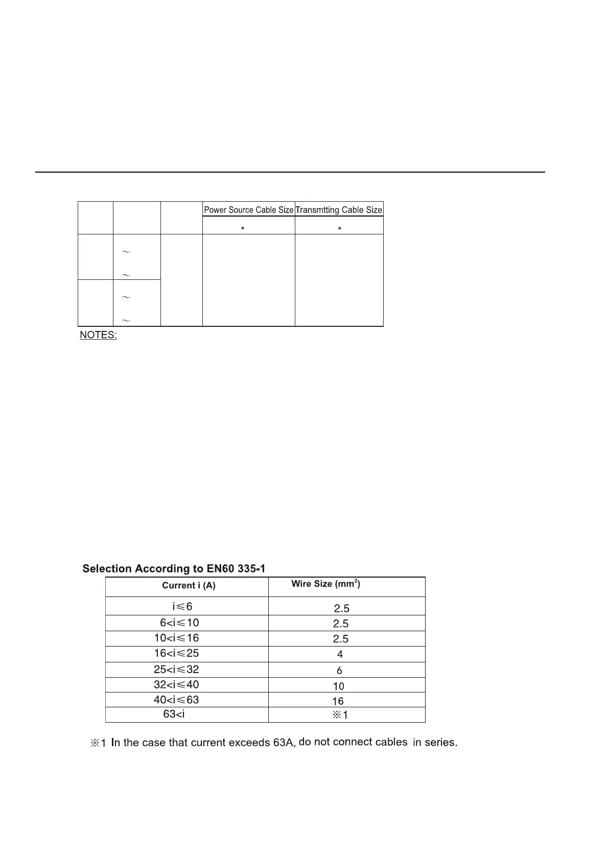 (3) Check cable capacity. See specification of