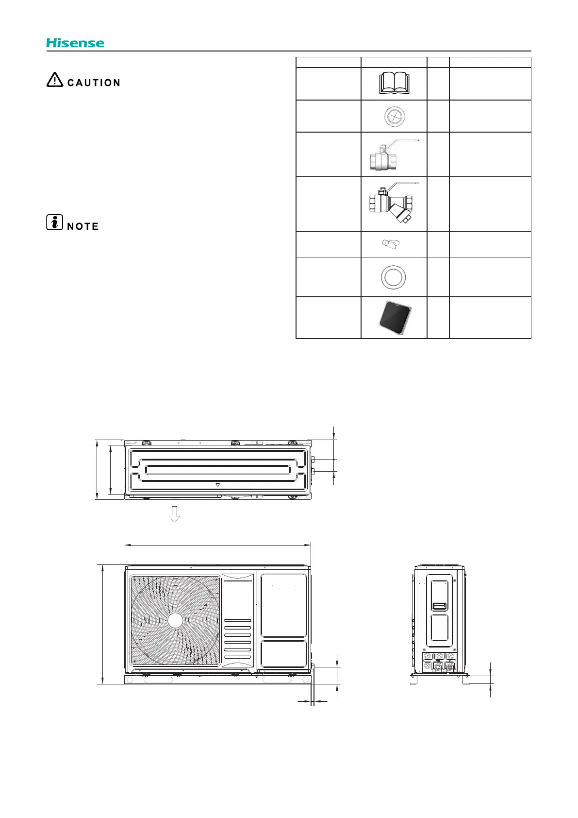 The accessories shown in the table are supplied inside the