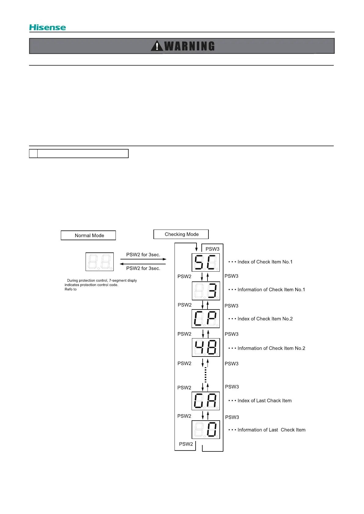 To cancel the checking mode: Press PSW2 for 3 seconds