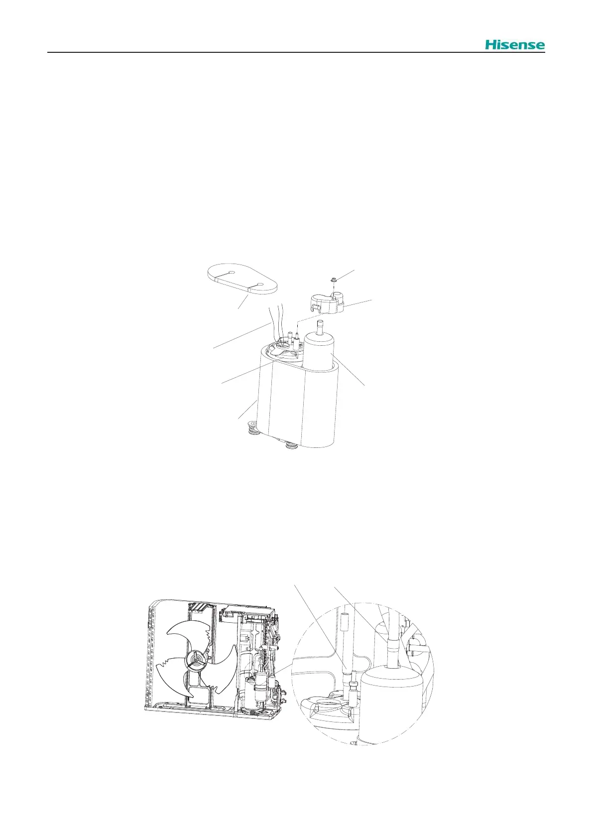 Disconnect the compressor wires in the terminal box and remove the thermistor on top of the compressor, as is shown in