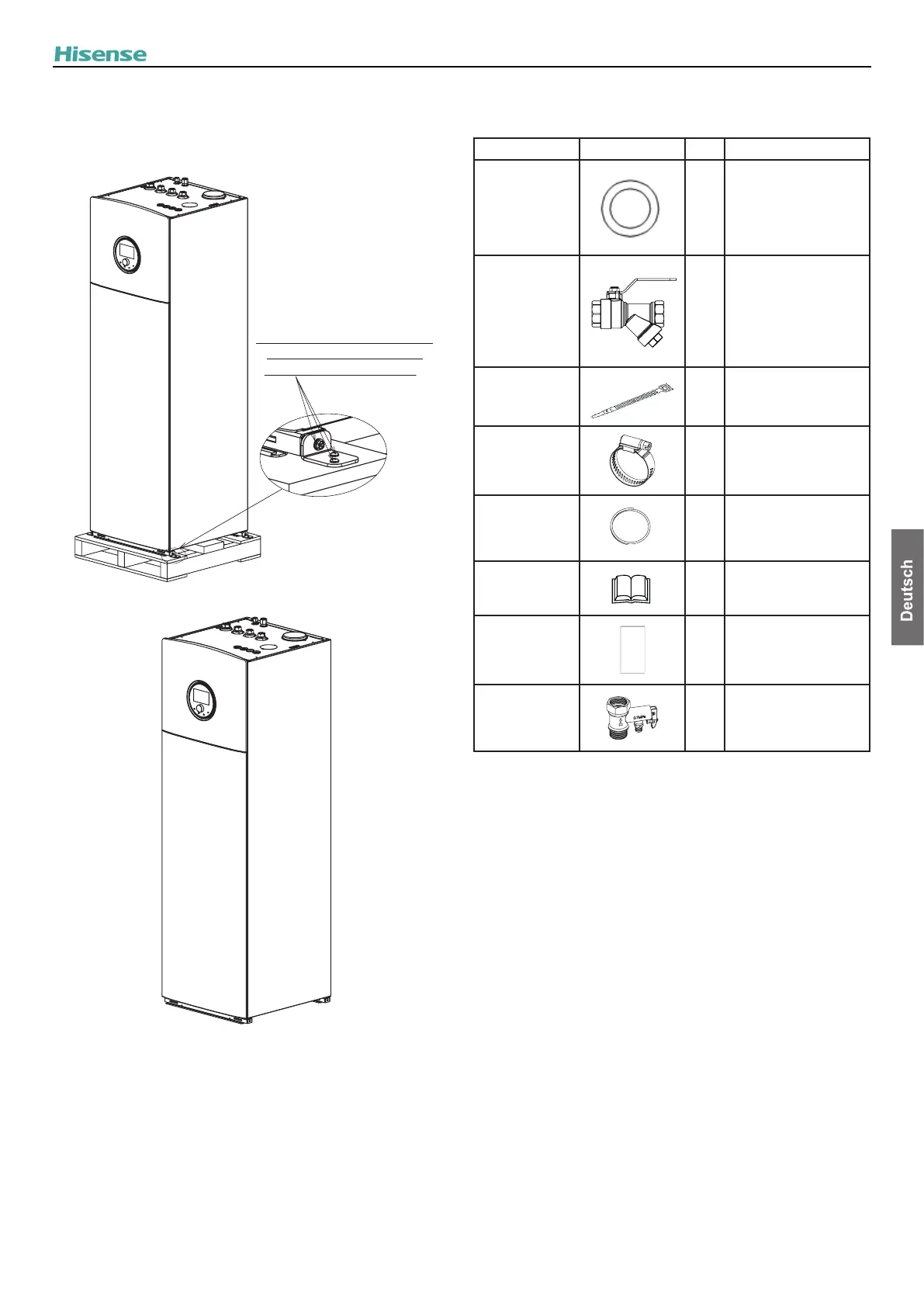 und den werksseitig mitgelieferten Zubehörteilen, die sich auf der