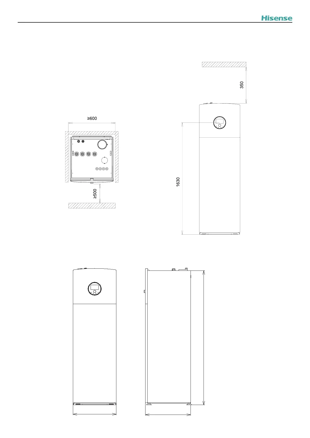 Hisense AHS-080HCDSAA-23 - Abmessungen; Allgemeine Abmessungen; Wartungsbereich
