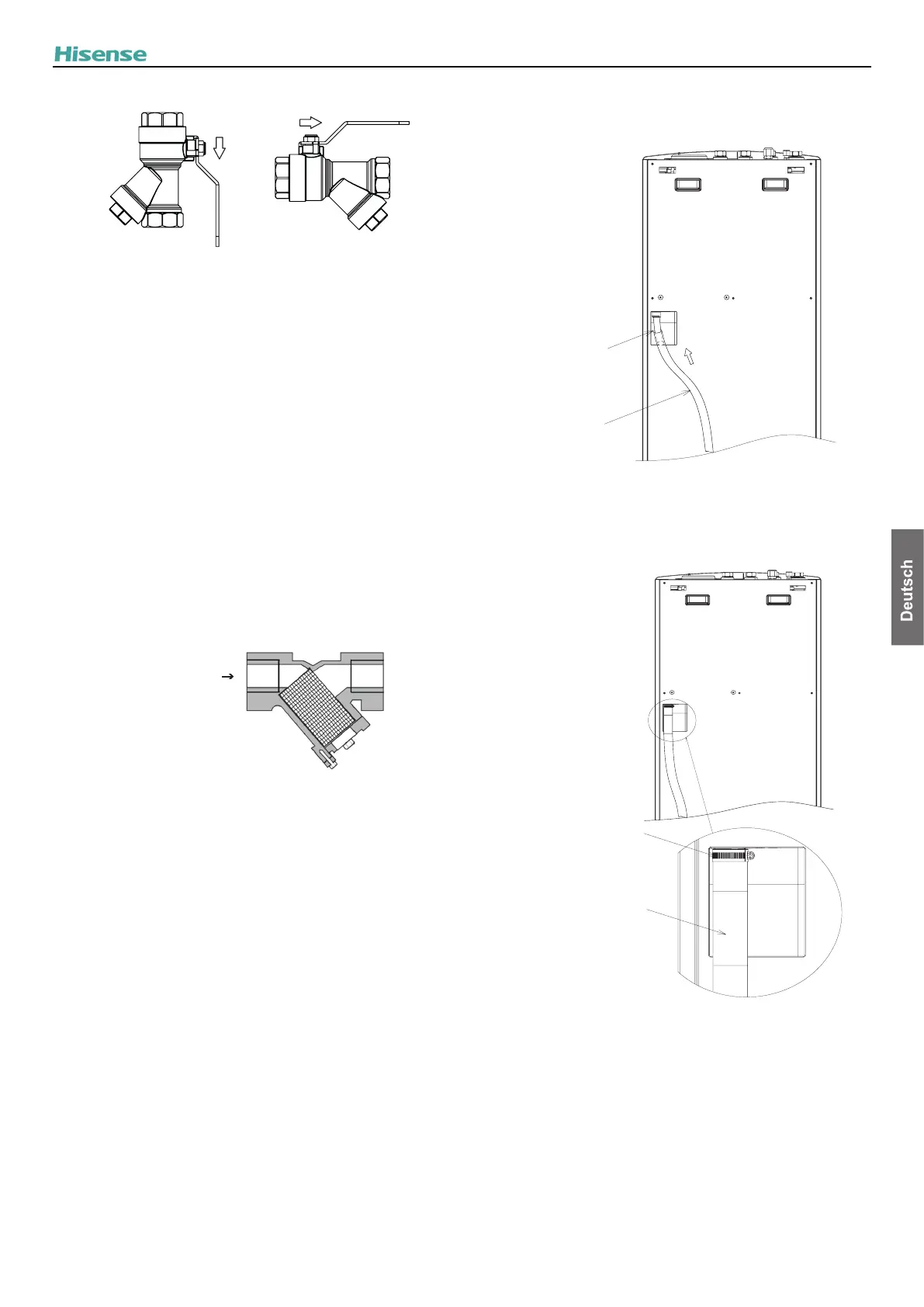 • Beachten Sie die Lage der Absperrventile und die Richtung der