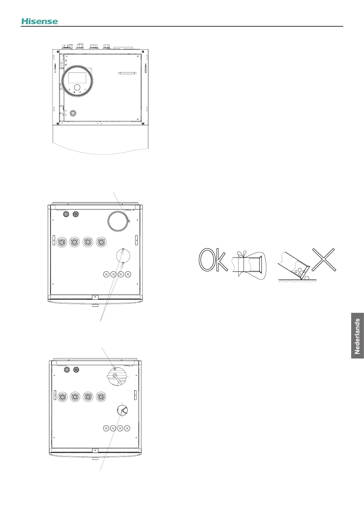 • Na het aansluiten van de leidingen moet een geschikte