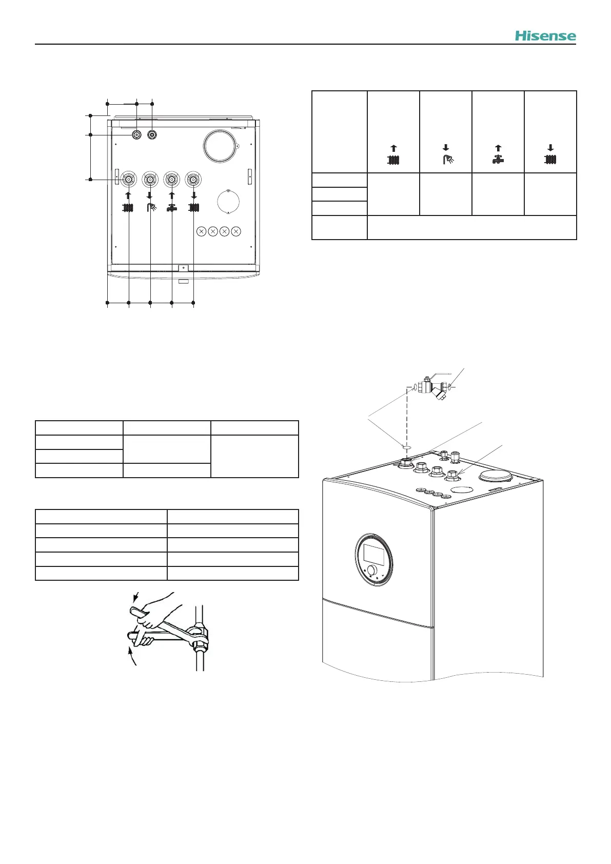 8.3.1 Aansluiting leidingen van de verwarming/-koeling