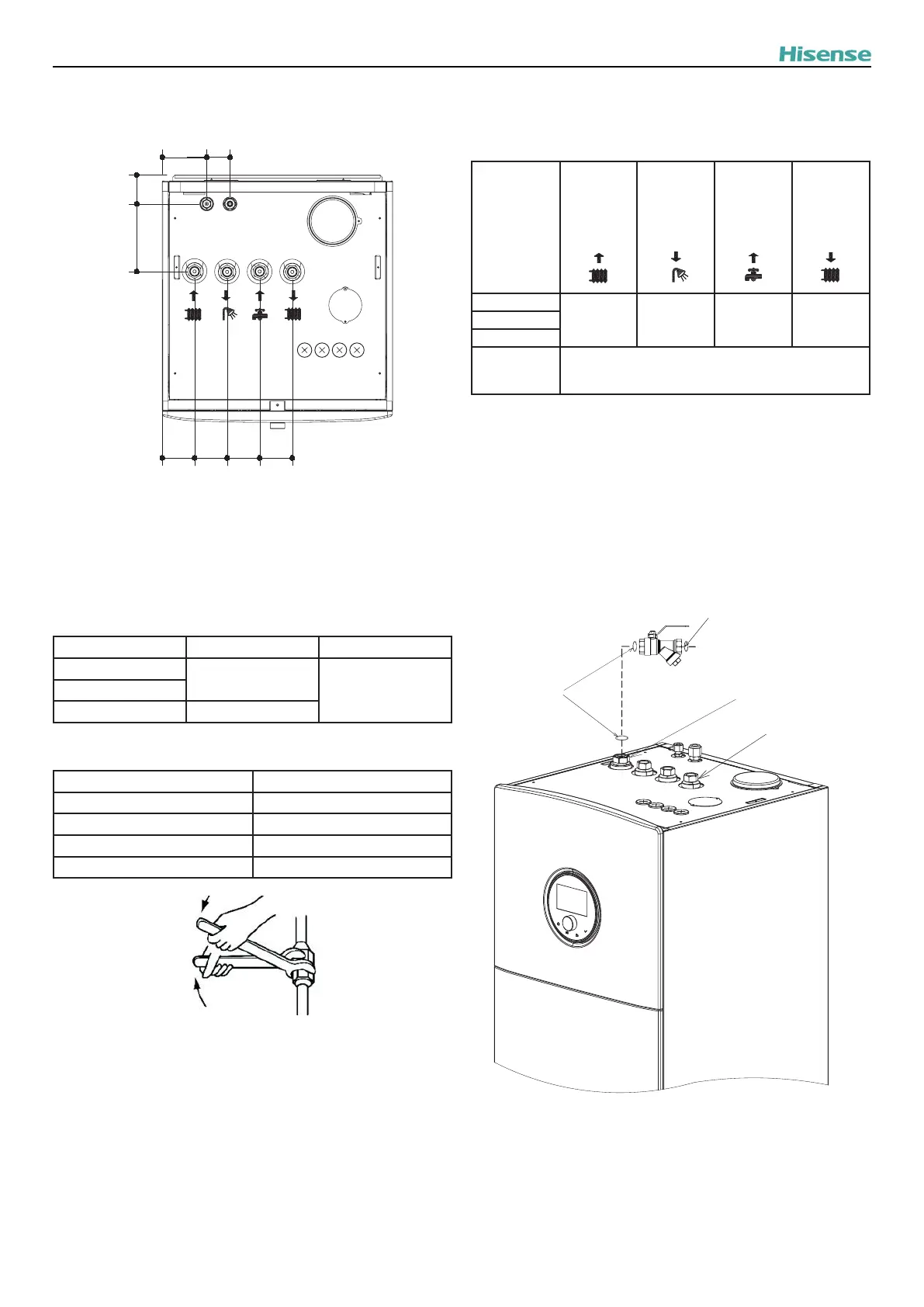 • Poniżej ukazano położenie przyłączy przewodów rurowych